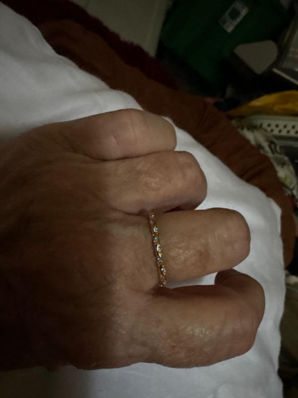 I WAS LOOKING FOR A DELICATE RING TO STACK. JUST WISH IT WAS AVAILABLE IN HALF SIZES. RING IS A BIT LARGE.
