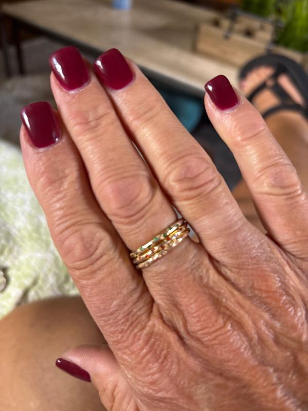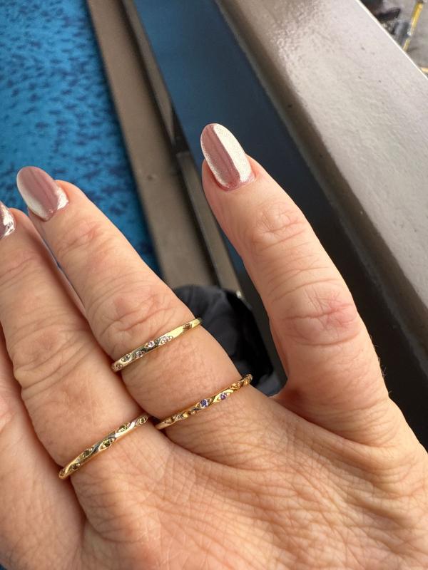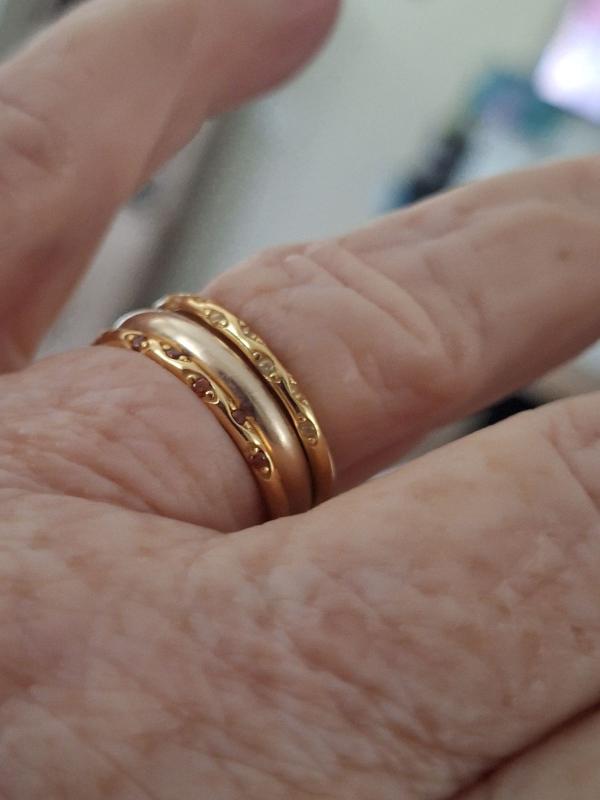 I love stacking these rings. No itching and no green fingers. High quality materials.