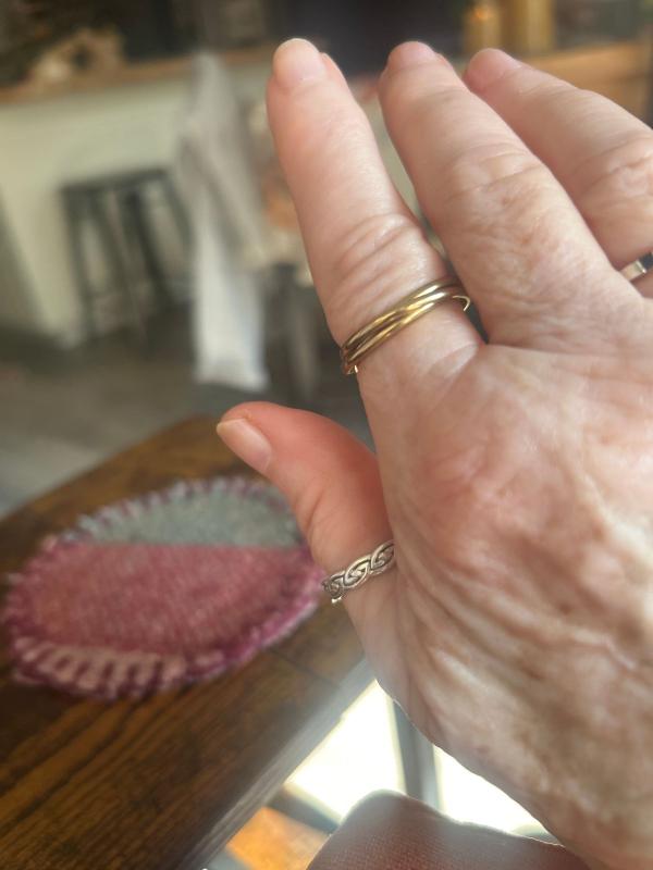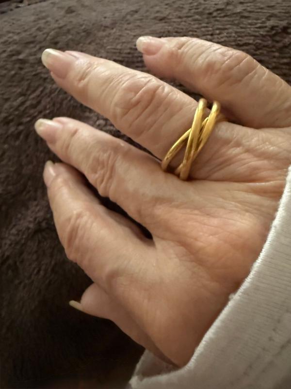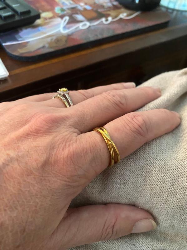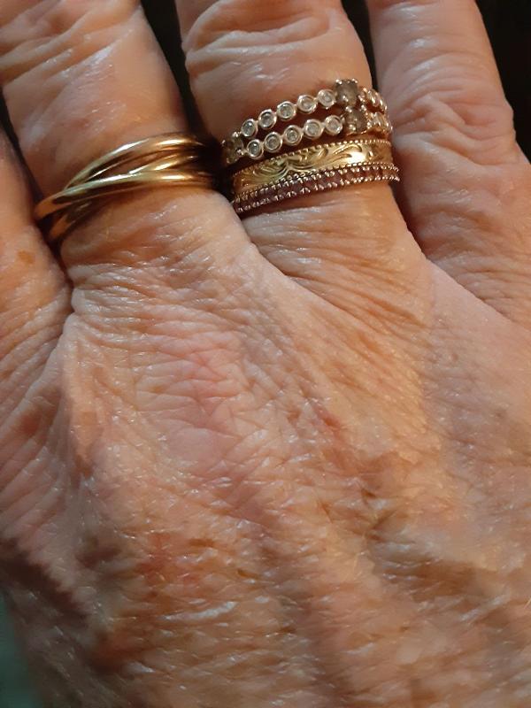 Beautiful ring. I am wearing it as a thumb ring. I have recommended this jewelry to many friends with confidence. From 70, me to 12, my granddaughter, it suits us all.