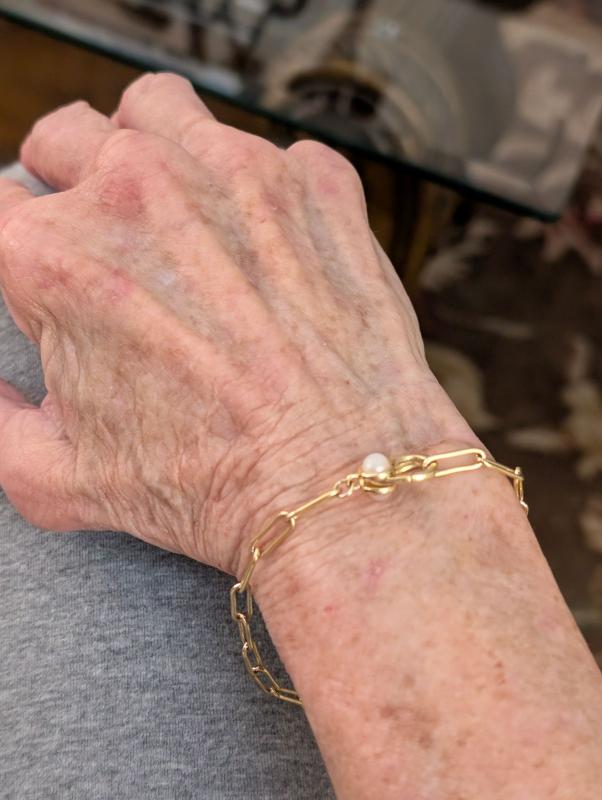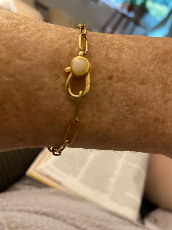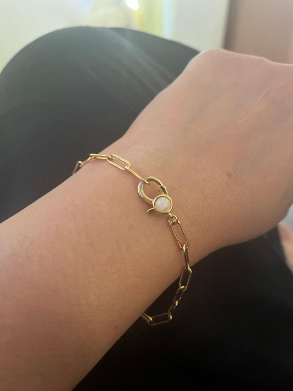 Another beautiful addition to my Paperclip bracelet collection. Love the pearl on the clasp.