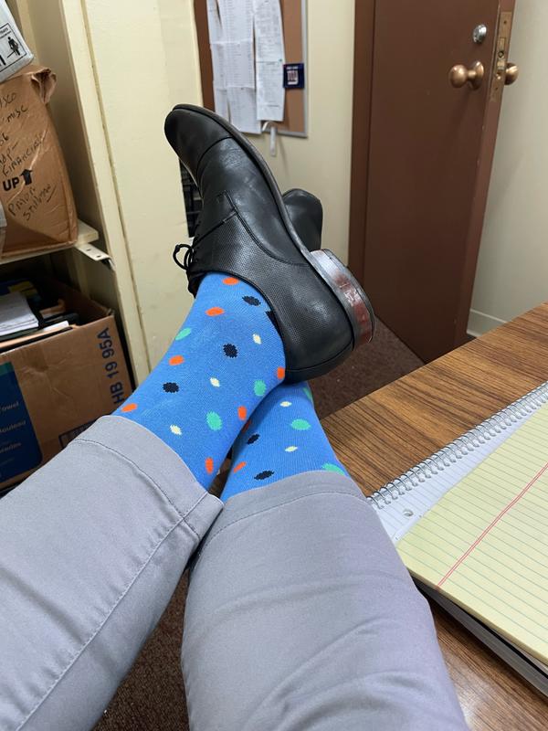 These colorful socks give a guy a personality. they are comfortable and good looking