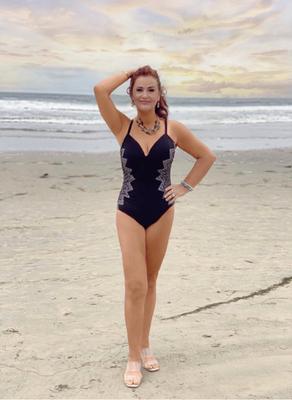Beautiful bathing suit, but it does not fit right. It s extremely tight to pull on, and the body is way too long on me. I am returning it.