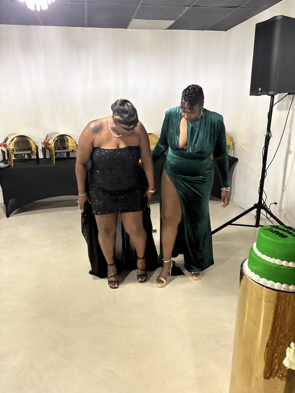 Miss CircleWomen Zenaida Emerald Green Cutout High Slit Velvet Gown