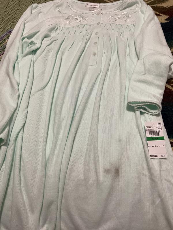 I love the nightgown but when I received it there was a big dirt mark on it. I used the Macy’s Chat On Line feature and asked if I were to wash it, could I still return it if the stain didn’t come out. The representative could not give me a direct answer, so now I am just hoping when I do wash it the stain will come out. I’m just very disappointed to purchase a new nightgown and have it come dirty.