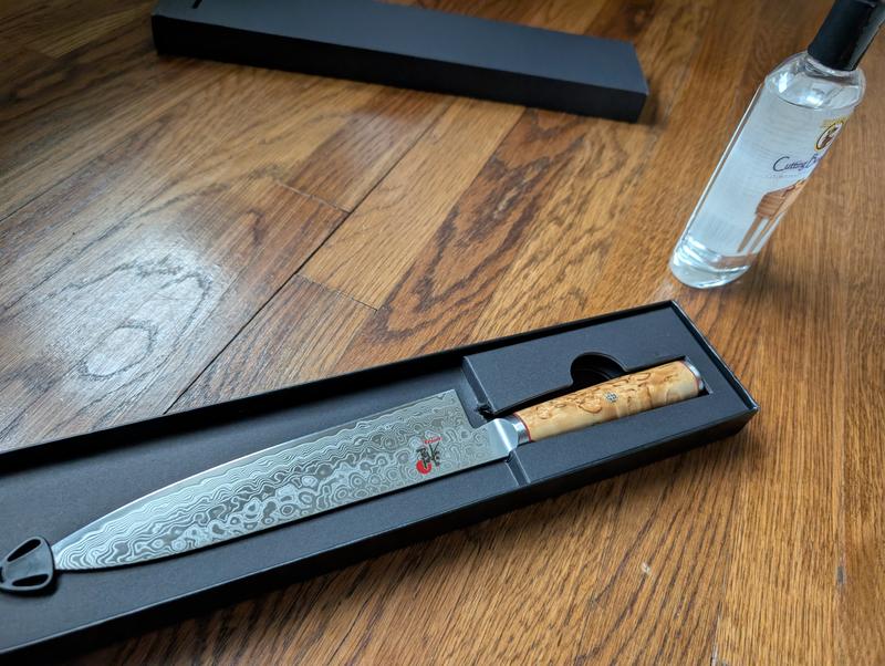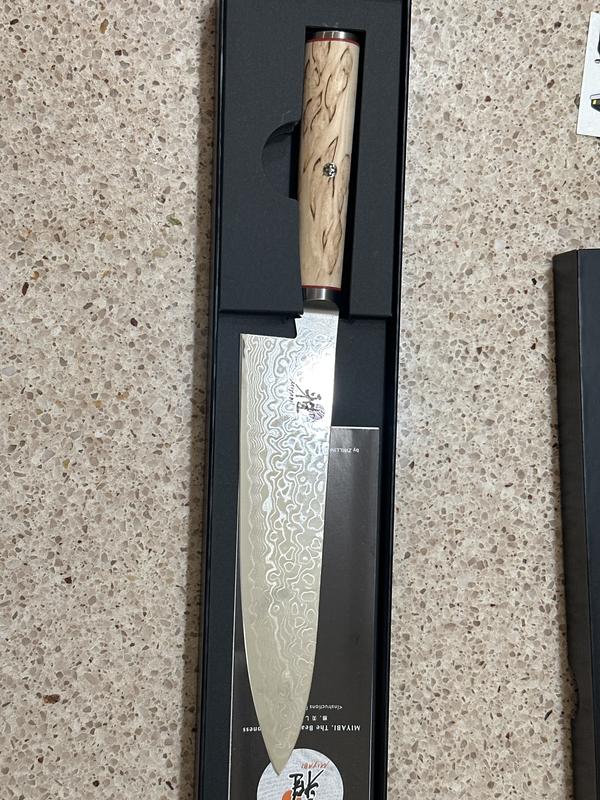 This is a best knife. I have 7 Japanese knives and this Birch Miyabi is the one I prefer most. It is perfectly balanced and comfortable for long cutting times. So far it’s holding its edge well.