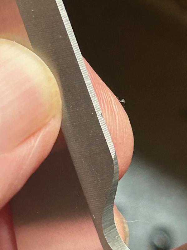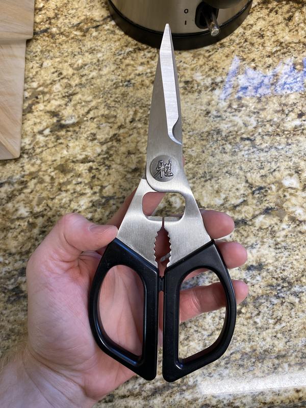 These scissors are a kitchen must have. Very sharp and the micro serrations hold items while cutting foods even if as hard as raw broccoli. Upon receiving them I did notice small roll over dings in the micro serration. This is not impacting the performance. They offered to replace them, but daily usage would impact the culinary experience here. Tossed the old ones. Overall, they would be a 5-star had the edges been pristine.