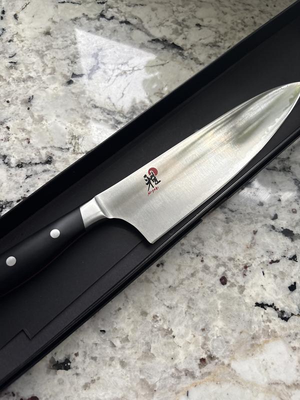 This is the first professional knife I own and with the amount of cooking I do for our family this has proven to be such a dependable asset in our kitchen. It's comfortable to hold and chops/slices like a breeze. It is very well put together and I love the handle material.