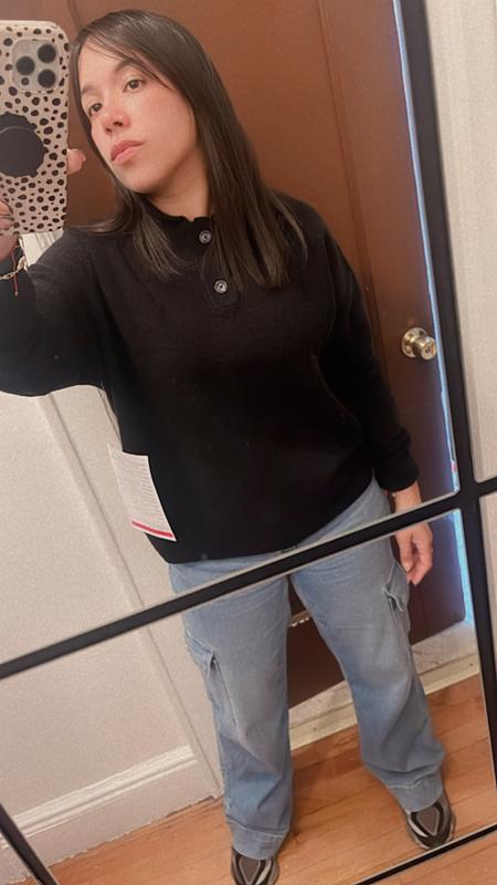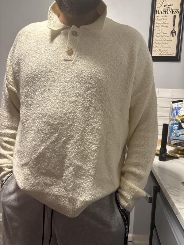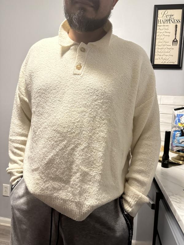 I bought both colors of this sweater. I purchased the black one first. Great color and fit and just warm enough without causing overheating. I liked it so much I bought the other color in the same size. The fit was a little bigger but the off white color is a little more yellow than I would have liked.