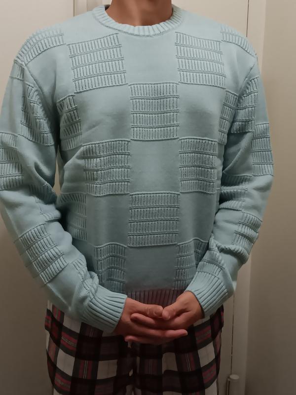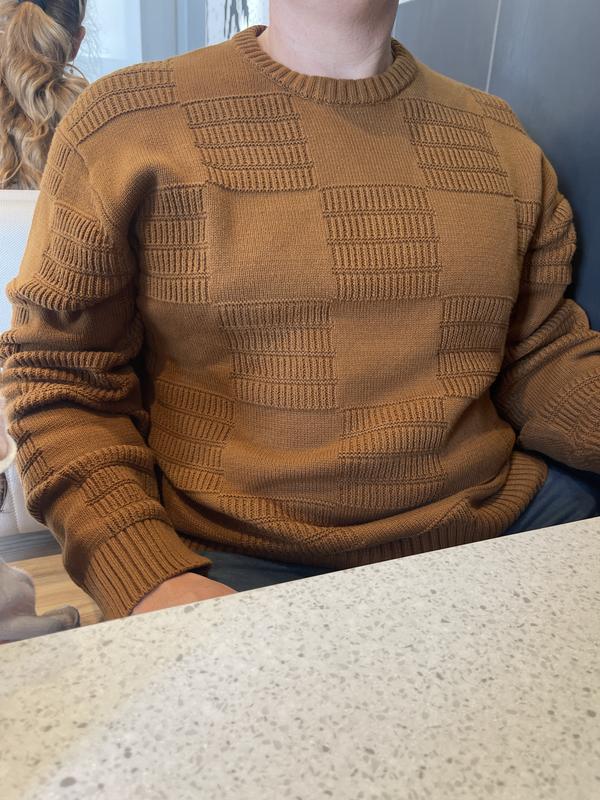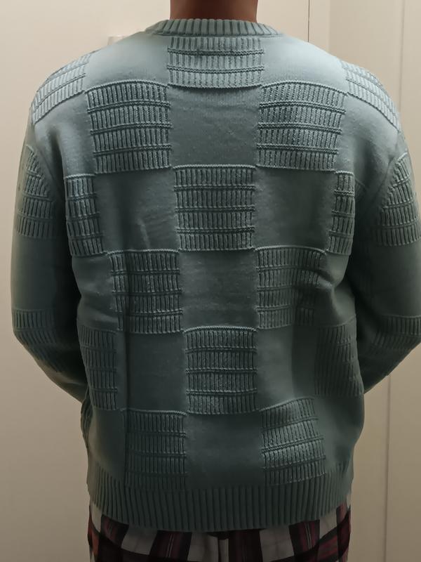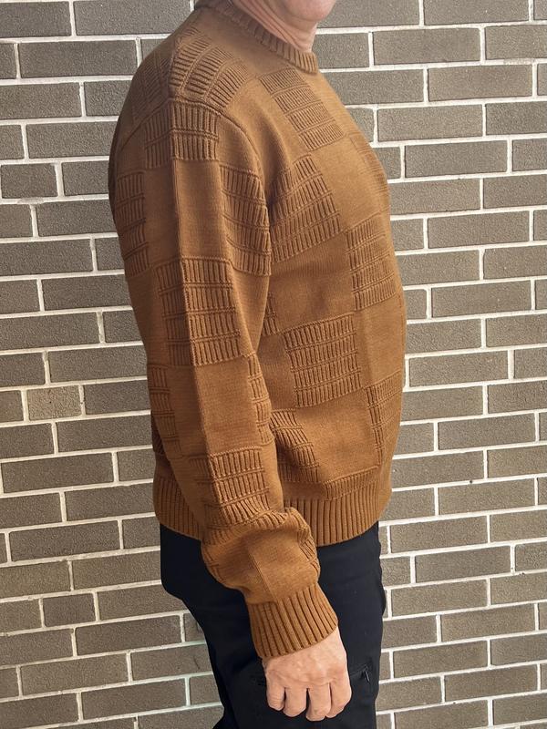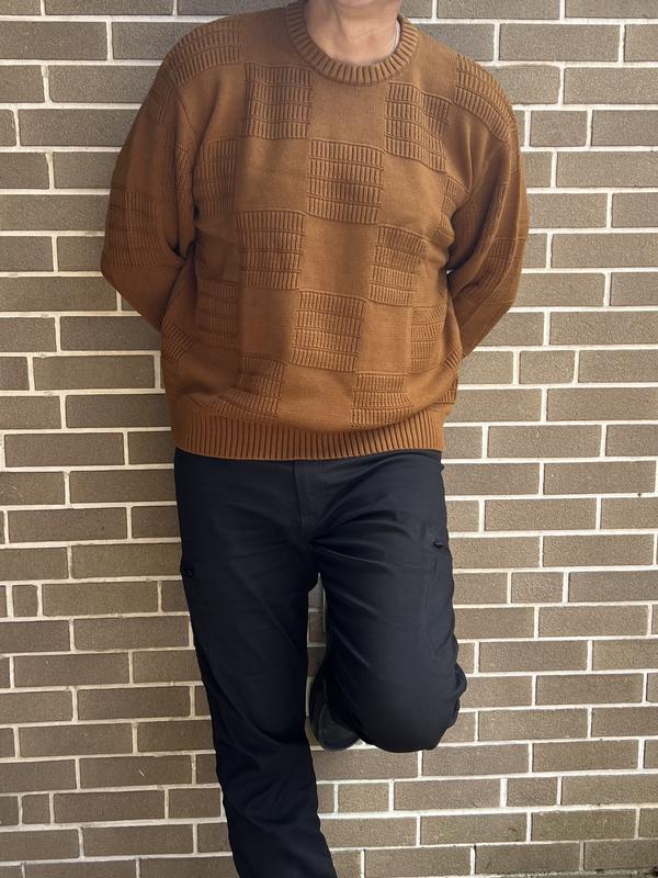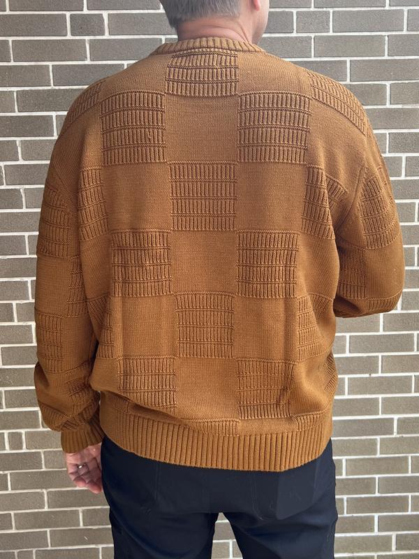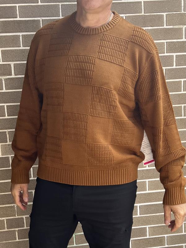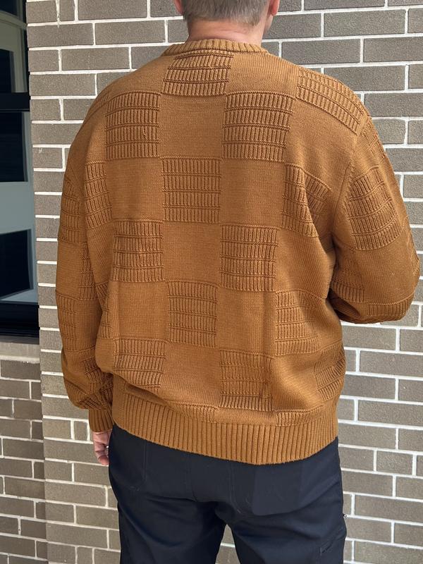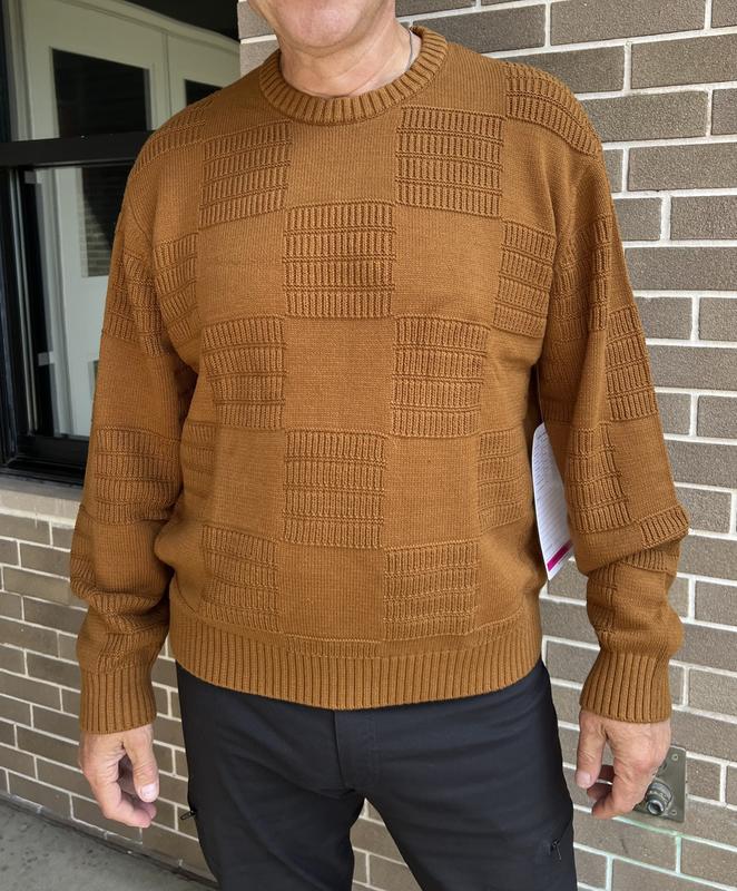 Men's Long-Sleeve Relaxed-Fit Textured Check Sweater, Created for Macy's