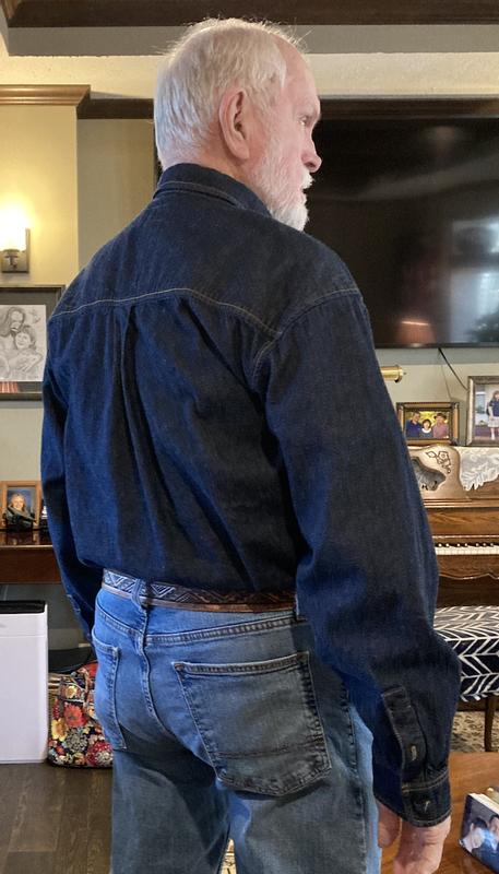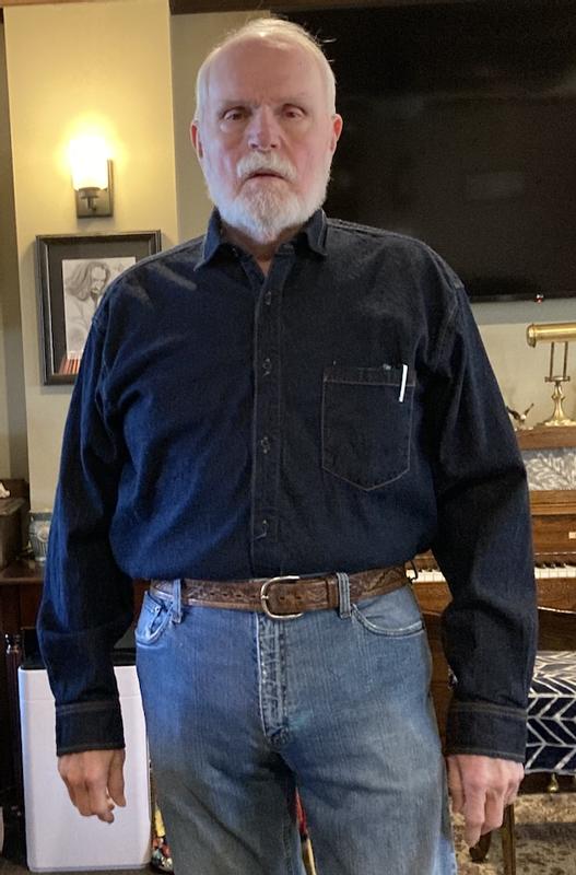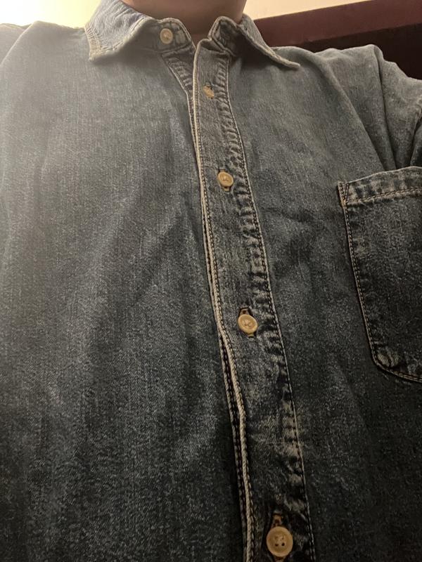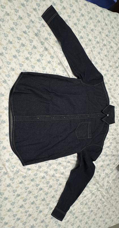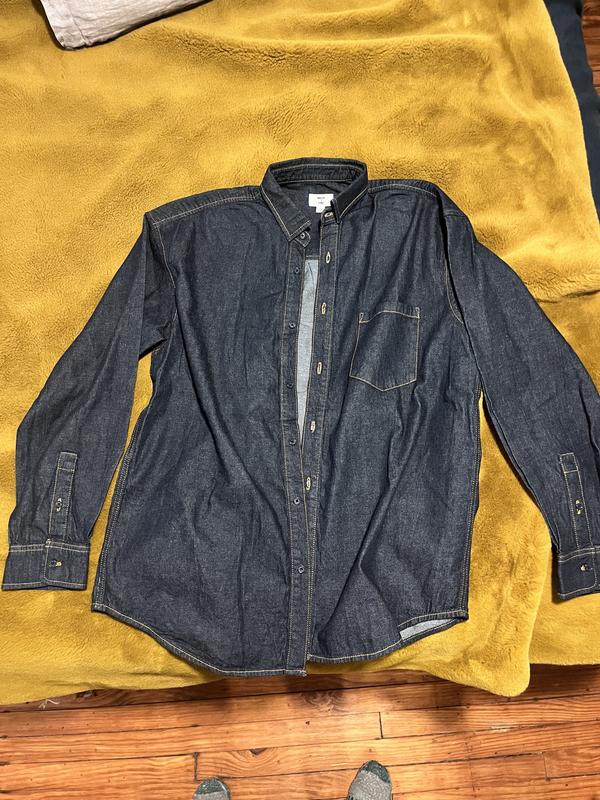 Purchased this for my husband — it's a very cool-looking shirt. The fabric is thick enough to work as a light layer in the spring and still comfortable enough to wear on its own in cooler weather. The color is a beautiful, deep denim, and it runs true to size. Great versatile piece!