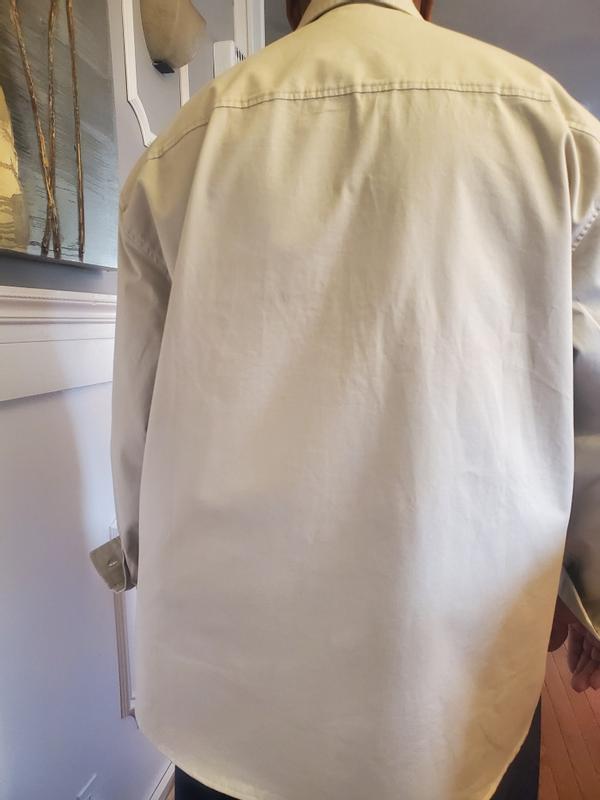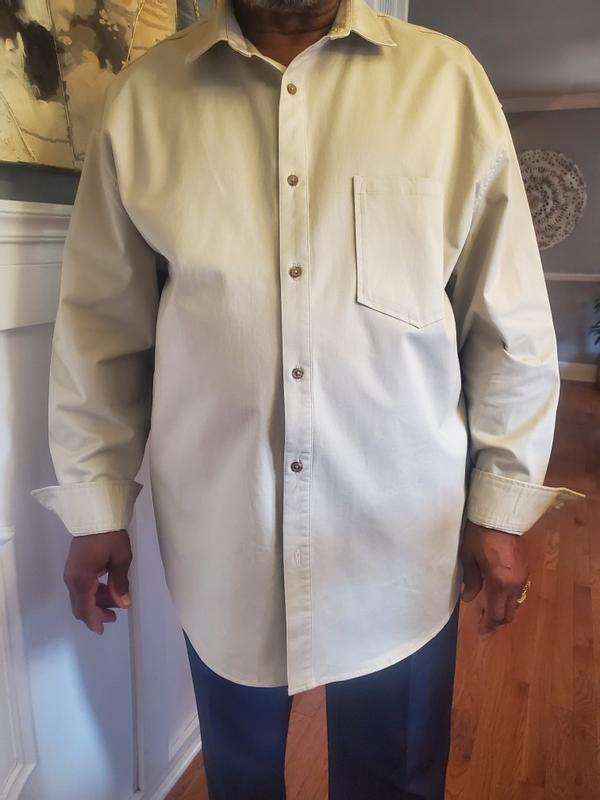 This shirt is very high quality. The fabric is thicker than you would expect. It is very easy to care for. After a few washes the navy color did not fade. I like that the extra buttons are sewn onto the tag so they will not get lost. I got it for my brother and he calls it a “going out shirt.” My brother is 5’8 and has a belly. I got him an XXL which is what he usually wears but I think and XL would have fit fine. The XXL was pretty loose and the arms seemed a little long. Overall my brother found it comfortable and thought it would be durable.