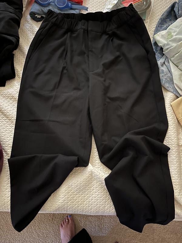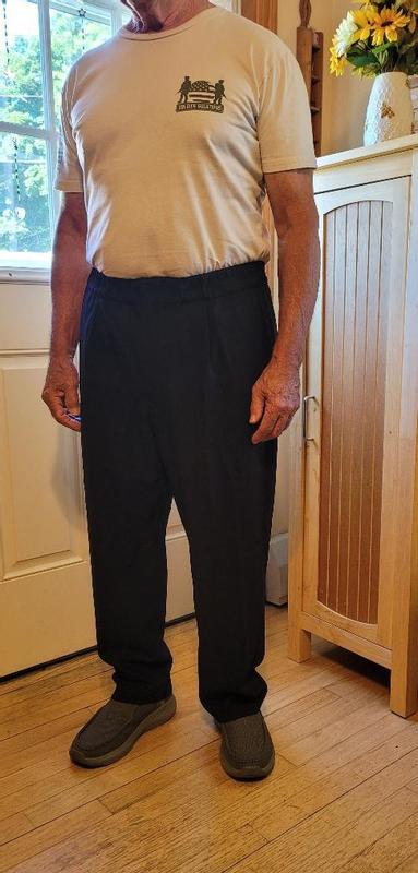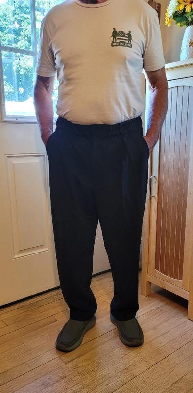Awesome elastic waist dress pants, size M32 waist. Fits perfectly with peg legs, perfect length 27” inseam falls perfectly on my Chelsa Boots ! Very comfortable dress pants w deep pockets ! Purchased both the black and the blue, perfect for Spring with a handsome dress shirt ! Great buy @ this price point, I would wear in Manhattan or my summer place in Springfield, Missouri !