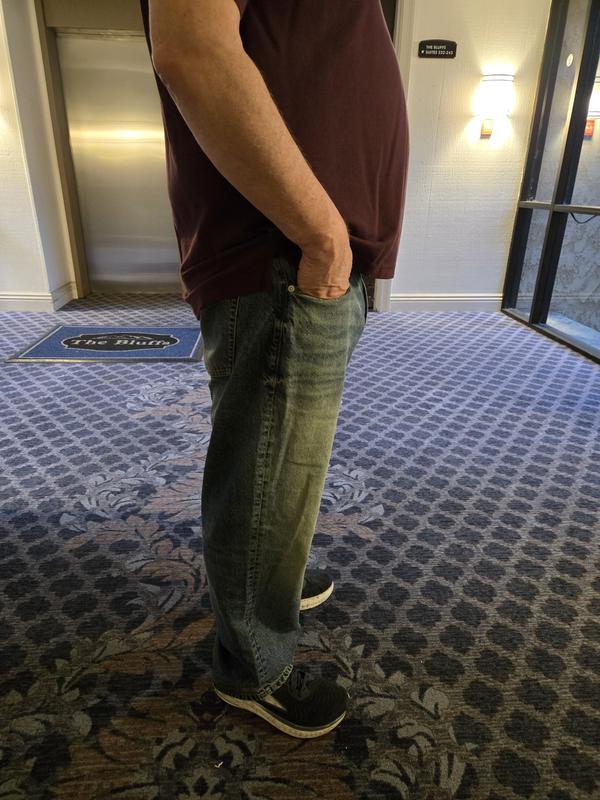 These jeans fit the way I like, which means not skin tight on calves and ankles, but a nice straight leg that keeps some draping. The ones I bought, incidentally, do not look like the ones pictured here. I prefer the dark blue color denim has after a single washing, and I prefer they get the "broken-in" look from my actually breaking them in ...in other words by wearing them. (I very much dislike the "stone-wash", deliberately "distressed" company-puts-holes-in-before-you-buy look. These jeans are comfortable in the waist too. I was impressed with and grateful to the salesman at the Livingston, NJ Mall's Macy's who informed me that, even though the store did not have my size, the jeans could be ordered. The pants were delivered in short order, and I still got the sale price. I am happy about this purchase