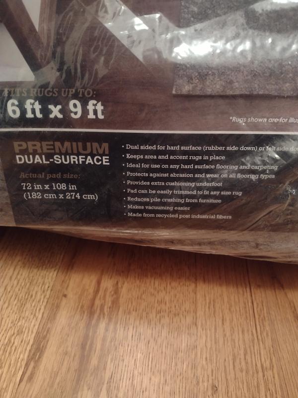 This area rug dual surface pad is just what I needed for my larger livingroom rug. It provides just enough padding to be comfortable for walking on without any of the bounce that you might get with a thicker pad. The pad is made of a material that can be cut to size, which is great if you have a rounded edge or want to repurpose it for a different-sized rug in the future. Not sure the dual surface is much of a benefit, but it does take away the guess work on which side is up/down. Overall, I am happy with the pad and I would recommend it for any area rug.