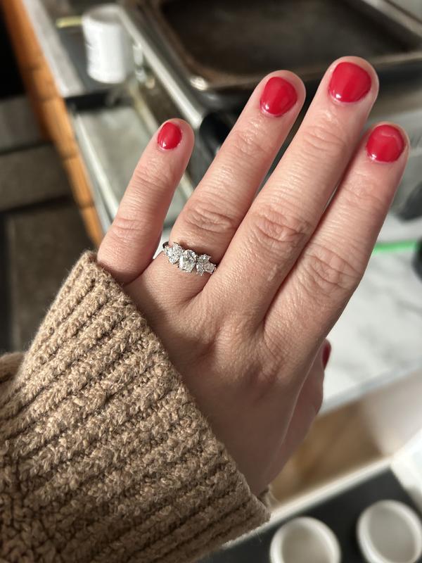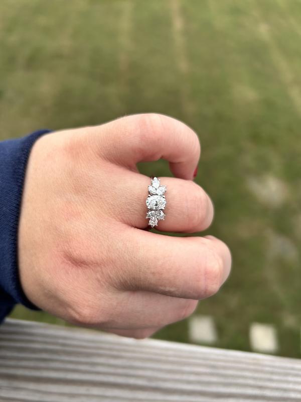 I picked this as my engagement ring! I have received so many compliments and I couldn’t love this ring more! It is low profile, so it doesn’t stick up all crazy and get stuck on clothing or get in the way. It is just traditional enough to be used as an engagement ring, but just unique enough to make you feel special and not have to worry about having the same exact ring as everyone else.It truly sparkles unlike any ring I have ever seen. Pictures simply do not do it justice. We purchased while it was on an insane sale and it feels illegal to have such a beautiful ring for the price we paid!