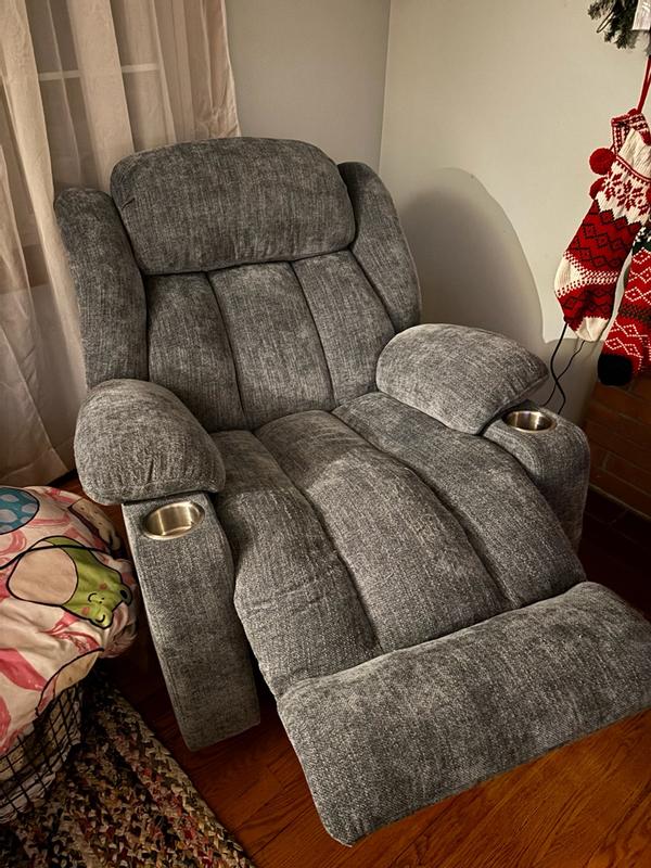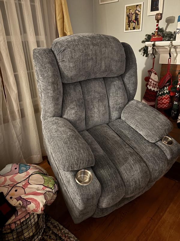 The recliner was beautiful plush and comfy with heat and massage. Unfortunately I couldn’t keep it because it did not recline all the way down for my disabled husband.