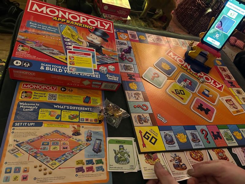 We think the new Monopoly App Banking is great. It is all done on one phone with the app that goes with the game, scanning QR codes on the different properties, cards you put in the middle (train, question mark etc) and on your bank card. I love the characters being made out of metal and being different colours. It's quite a fast paced game and finishes after all properties are sold. The visuals and sounds on the app are brilliant and what you would expect from monopoly. The app then totals up your money, the cost of your properties and any bonuses you've earned and reveals the overall winner. We really enjoyed playing this as a family this Christmas Eve. The only things I think could be improved are: When you're on your turn and you land on a property, you then have to scan the property card and get the option to auction or buy the property. Then if you choose to buy the property you have to scan your bank card, but we feel it should automatically take the money from your account with it being your turn. There is a glitch in the app where if you land on the crown to upgrade a property but you don't own a property, you can't then click to save the crown for later - you have to just give it up. We do feel there should be an option to keep going once the properties are sold like in traditional monopoly where you can then make each other bankrupt. Overall though it is a fantastic game and we will play it with family and friends.