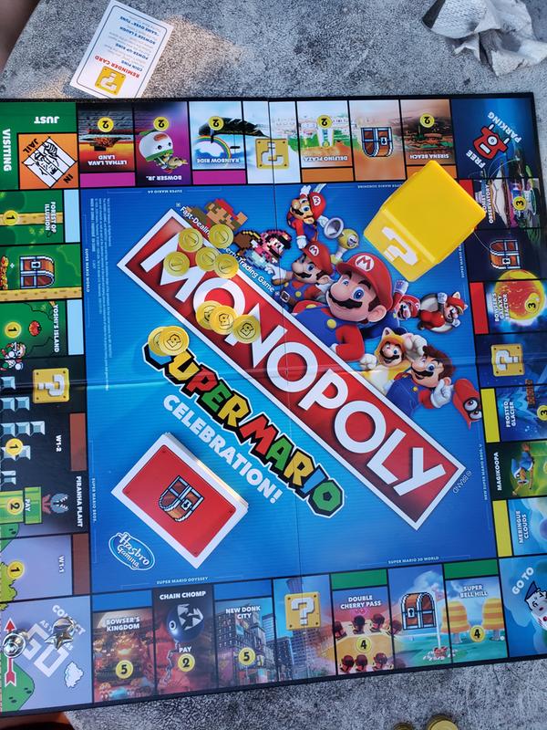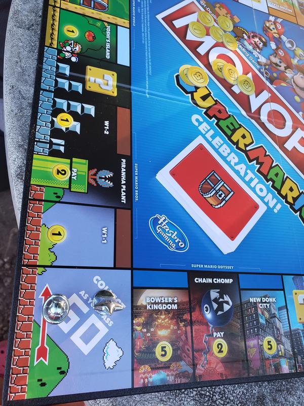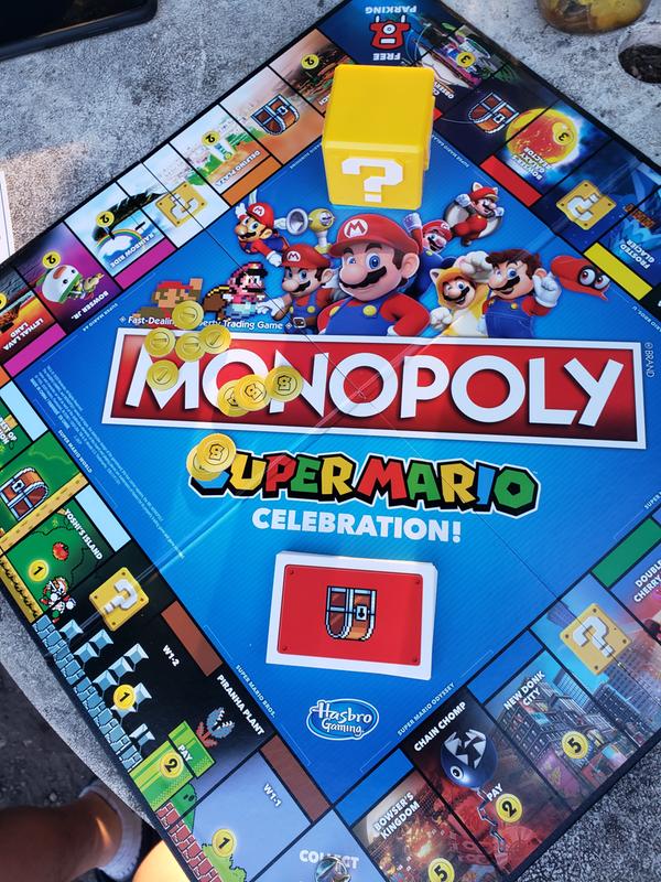 What an honor it is for me and my family to have this board game! Super Mario was my very first video game to get hooked on, I have great memories :) ... (and we) as a family love Monopoly, it is so addicting! so, to bring both in one Monopoly Super Mario Celebration Edition Board Game is so so very cool! even just by looking at the box, the colorful images so representing of Super Mario, instead of normal houses and hotels, it has all Super Mario locations, just like in the video game, it's the video game on a board! .. it even has a question mark button, that while playing, you press to collect or lose coins, or to take another turn, and when pressing the button it makes the sounds just like on the real game (uses one AAA battery) which is already included, but just in case. This makes for such a perfect gift to anyone that loves Super Mario and Monopoly!