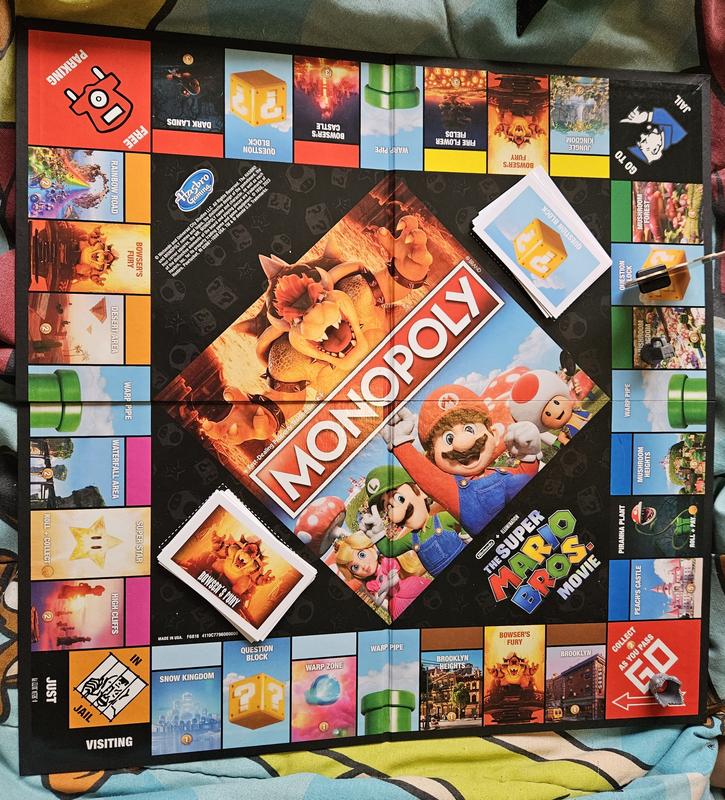 • Inspired by the Super Mario Bros movie - in the Monopoly Super Mario Bros, movie edition game, players can imagine battling Bowser to save the Mushroom Kingdom as they explore the world of the film