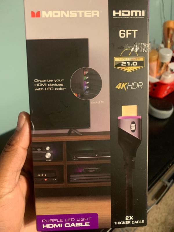 I really like this Monster Purple HDMI purple LED cable. It is 6ft long so it is a great length for my devices. It is really easy to use and I have had no issues with this cable. I love the purple illuminating light. It is very good quality and I plan to get more in different colors.