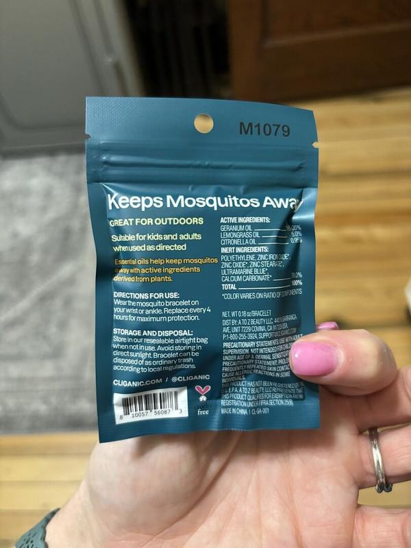 The natural blend of oils and essences is non-toxic, pleasant to smell, and decently effective. The great things about these are: 1) reusable, when you reseal them in their individual packets, 2) 'repeatable', because you can wear one on each wrist and ankle, 3) REALLY easy to take on and off, even over shoes and jewelry. The bright colors are fun and fashionable for outdoor activities!