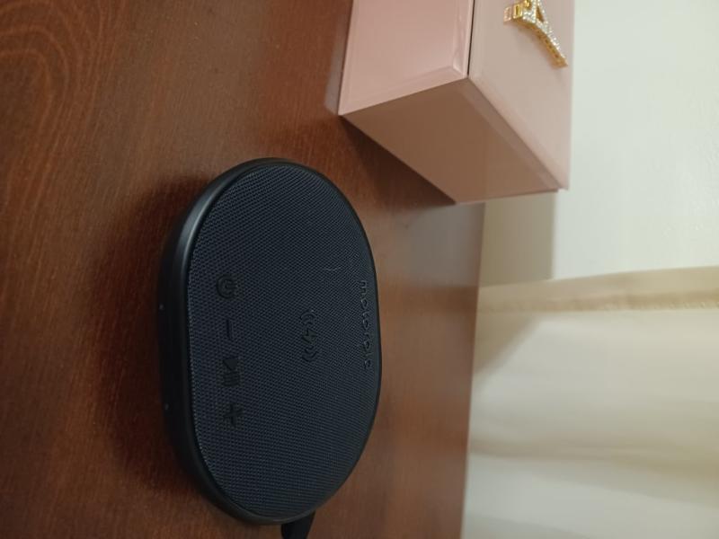 Great little speaker! It sounds really nice for it's size- which is very small and compact, perfect for traveling or throwing in your bag for the beach or a picnic. I love the wireless charging feature as well. Overall I'm really happy with it!