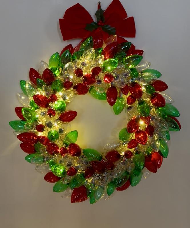 Mr. Christmas17" Retro C9 Bulb Wreath, Red Green