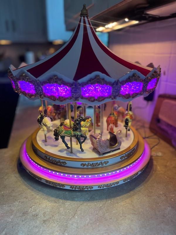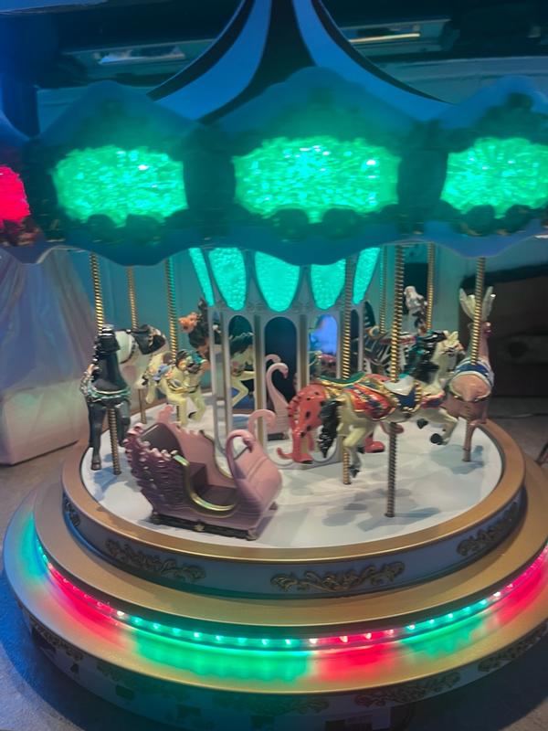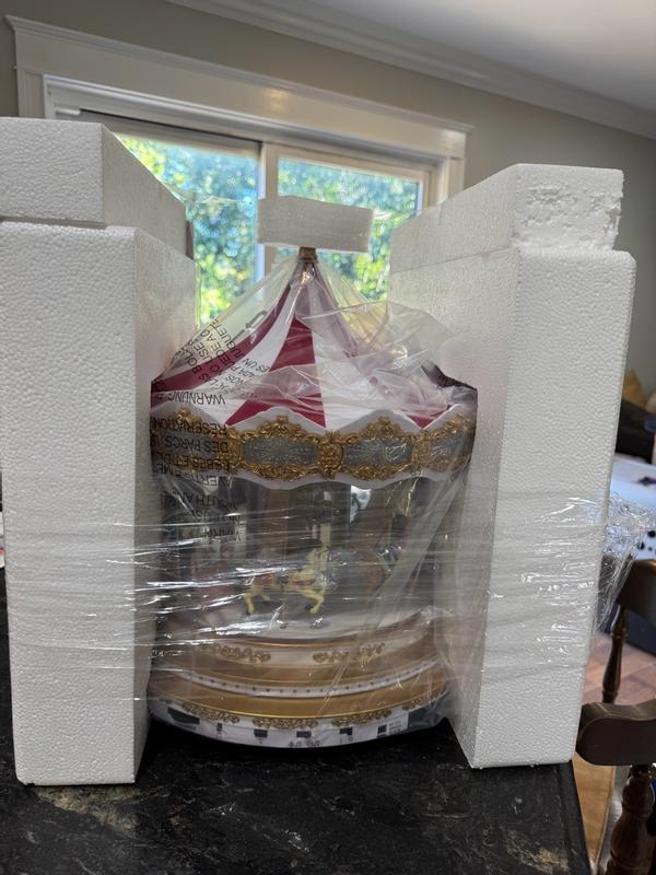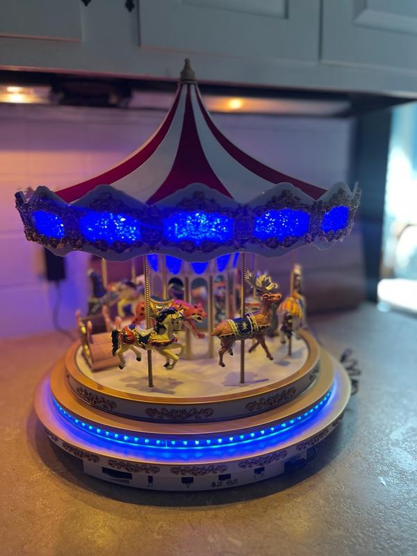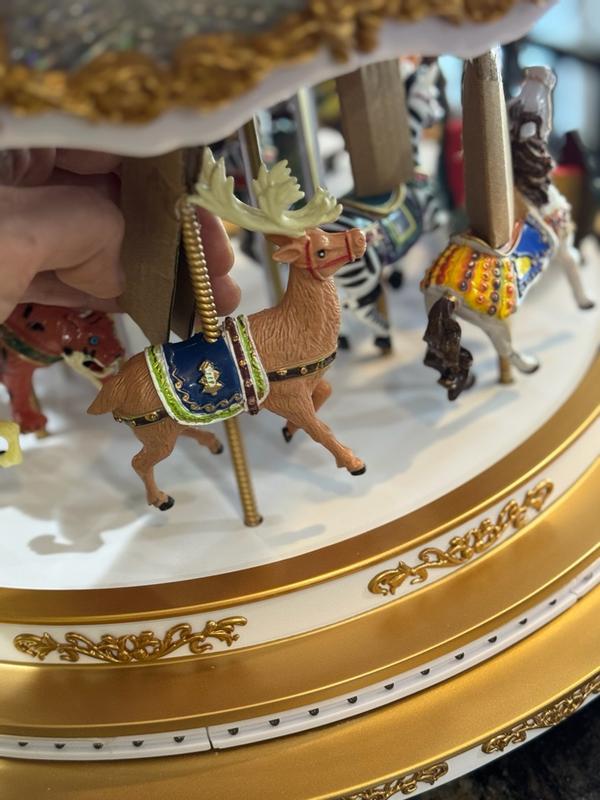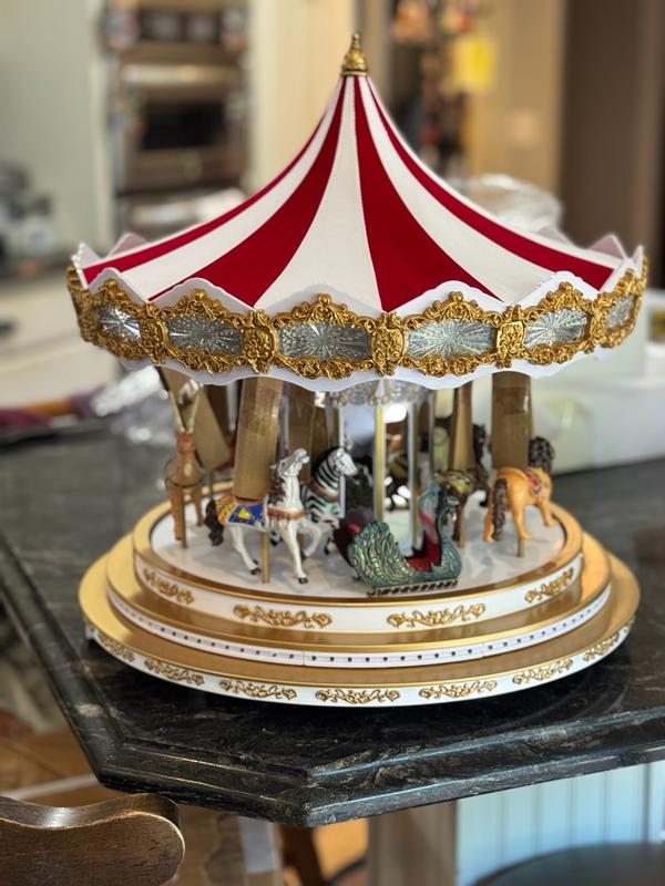 This carousel is magical and absolutely gorgeous. The details such as the cloth roof, lights and music are perfect. I can’t wait to display at Christmas. My kids were enthralled.