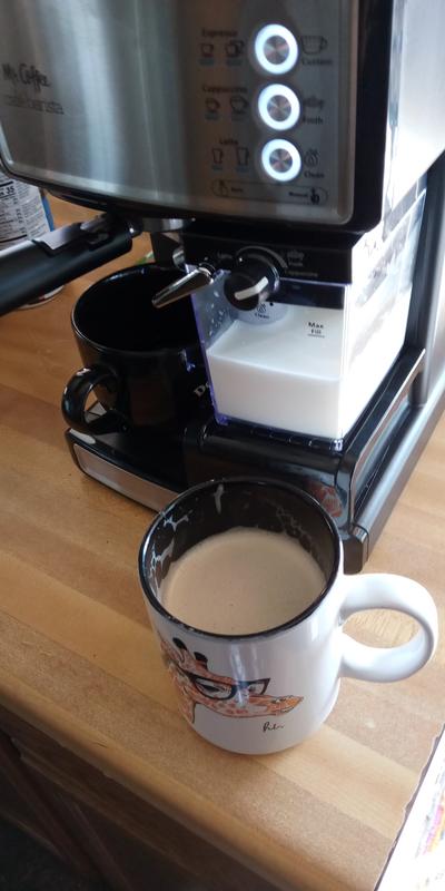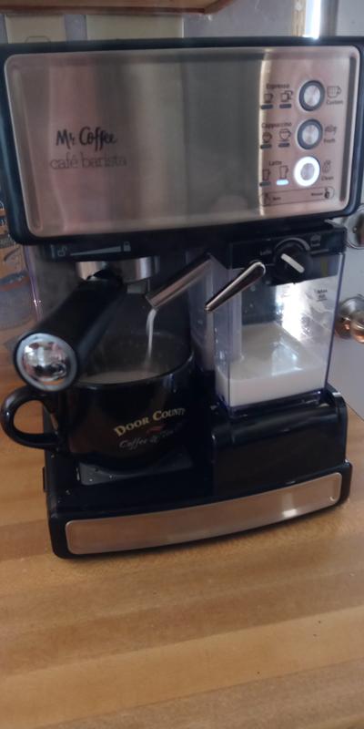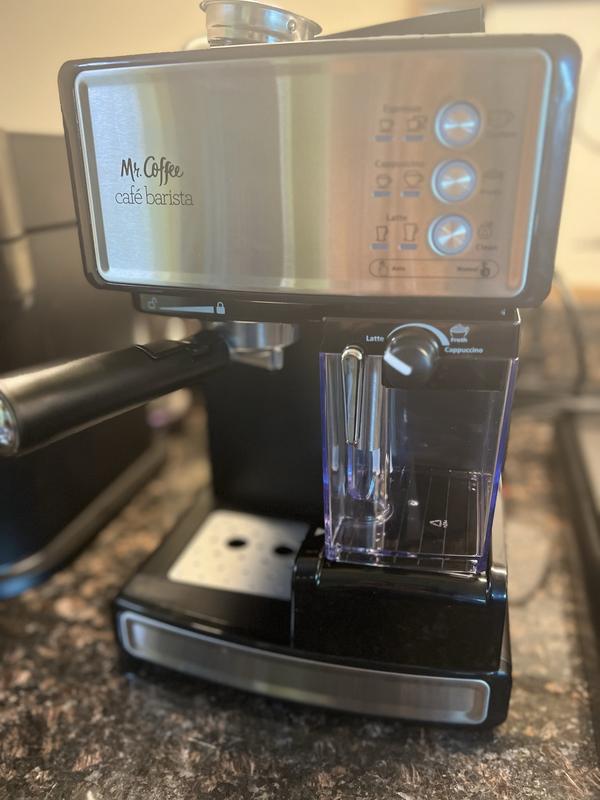 We love this Cafe Barista Black & Silver Espresso, Latte and Cappuccino Maker from Mr. Coffee! We've been using it to make lots of delicious holiday coffee drinks like peppermint and pumpkin lattes. It's an easy machine to clean and to use. It does take up a bit of room on the kitchen countertop but it's well worth it because of the convenience of being able to be my own barista. I have been grinding whole bean coffee to use with it and using oak milk with the steamer. I've had no issues with this machine and love how nice of quality it is.