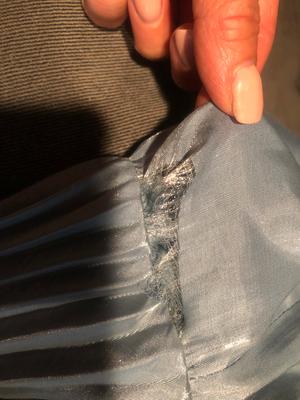 I loved this dress as well --- so flattering! Bought it and wore it at my son's wedding. But like the prior reviewer said, the waist pulls out from the seam and the material frays so it's unrepairable and the jeweled clasp that runs through the halter at the top gets stuck inside the material constantly. On the day of the wedding my husband was frantically pulling it out with needle nose pliers! I got so many compliments on it, but came online to return and exchange for a new one (thinking the one I got must be defective). Sadly they are out of stock and I have a dress that I was only able to wear one time. Would have loved to have it for future events. It really is pretty -- just made very cheaply.