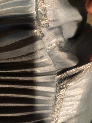 Such a pretty dress, but it arrived in very bad condition. The jeweled neckband was broken into several pieces, and the fabric was pulled out of the waist seam and fraying. The pretty ice blue color in the photo was actually a grayish blue- green, but I still might have kept it if it hadn’t been in such poor condition. I was surprised Macy’s mailed it out without inspecting it first.