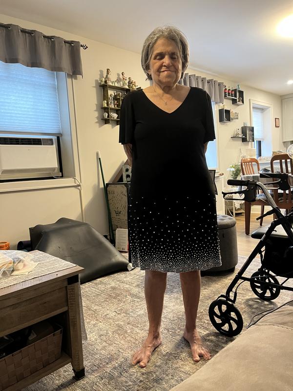 I ordered several dresses and this one was perfect at 5 feet tall the petite large is perfect. I normally wear a medium but was unsure of the sizing. This one is a winner for me
