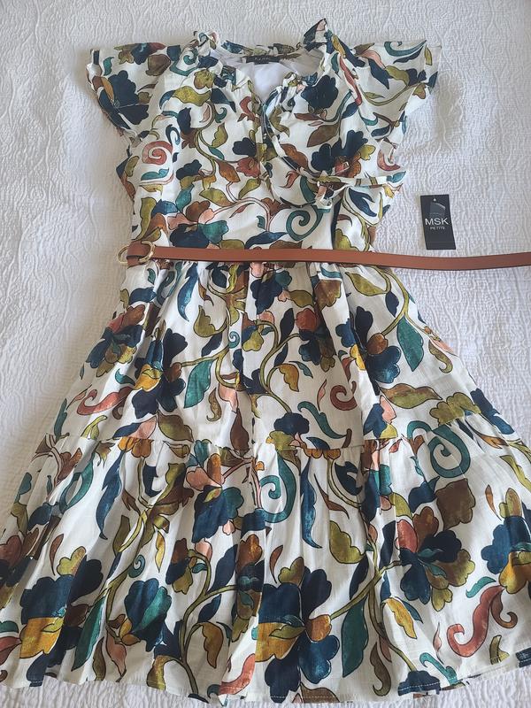This dress is very pretty, but I think it looks too roomy in the waist area. I luckily have an adjustable belt that I purchased here at Macy's, and now I really like the way it looks on me. Macy's size and fit information is incorrect as far as the length of this dress - I purchased PM, and it's 35" long from center back neck to hem.
