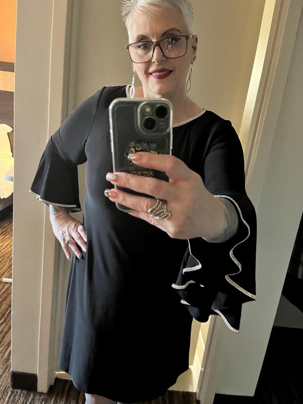 Needed a dress for a “formal” wedding, also the couple requested guests only wear certain colors! Thankfully black was one of them! I’m a few years out from cancer, being bald, and added pounds. I always feel like people are looking at me since my illness. We looked at several stores, couldn’t find anything for my body type. Macys had the largest selection! I’ll be back, 3 of my own 7 kids are getting married in the next 18 months!