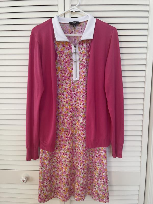I knew this dress would fit me nicely because I have 2 MSK dresses already. Cute dress and very comfy on a hot day. Also nice with a pink or green sweater to dress it up.