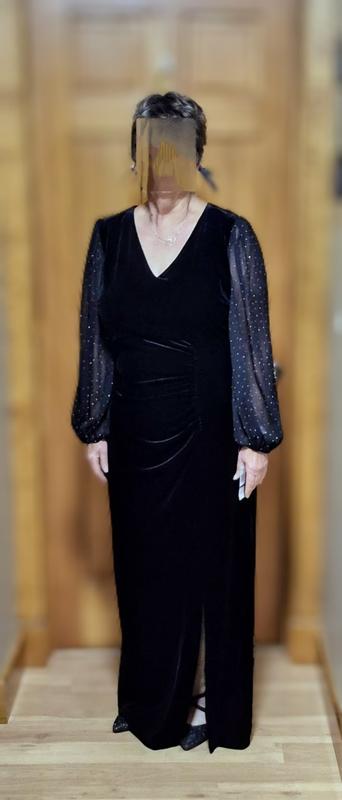 Women's Velvet V-Neck and Balloon Sleeve Maxi Dress