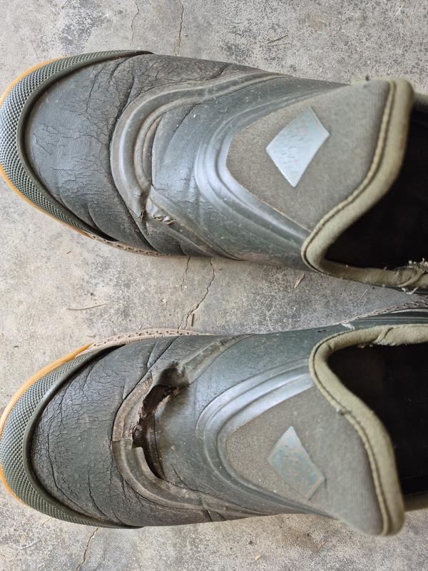 the shoes are comfortable and a good alternative to the hot ankle boots I have but the rubber broke down very fast. Within a couple weeks of use there is breakdown across the top of the toes where the rubber leaks severely limiting thier utility