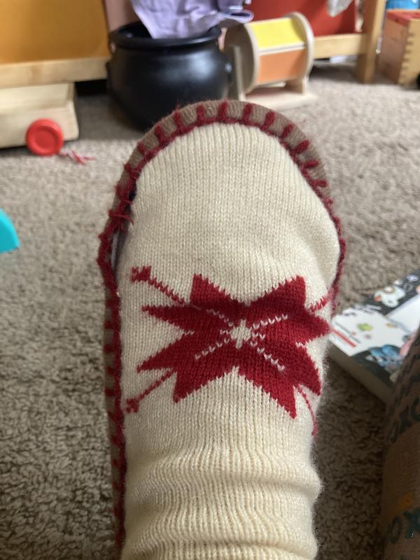 I absolutely LOVED my previous Mukluks, which were thicker and shorter. But I couldn't find the exact pair with the same pattern, so I chose this instead. My old pair lasted me years, and this lasted me about four to five months. Not as thick as the old ones, which wasn't a huge issue for me, but there's the issue of the top of the sock constantly falling down after a while (I had the correct size which fit my foot), then if you have a single toenail that's even a little too long, it starts poking holes into the bottom. Not through the entire sock, but through the first layer. It's a disappointing mess, and I unfortunately can't find the old pair, even of the same type with a different pattern, so I'm just gonna start wearing my old pair that's tattered because it's still better than this