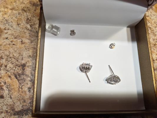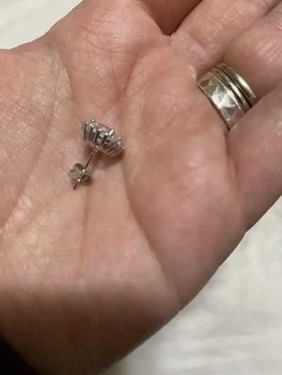 These earrings have great, clear color. They are a medium size stone, so not overly large or gaudy. The posts were both crooked. One was so much so, that I had to straighten it out myself. Luckily it didn’t snap off.