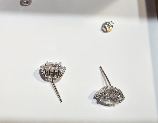 Multi Colored Cubic Zirconia Cushion Shape Stud Earring in Sterling Silver
