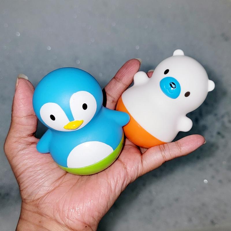 I first came in contact with these toys in a baby swim class. I thought they were adorable and was so please to learn that Munchkin made them. My son loves these toys both in and out of the water. He can toss them and they sit right back up. Such a fun toy with a cute design!