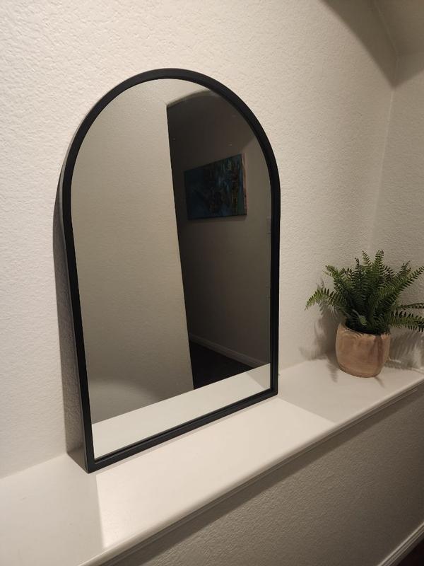 I received the Mila 20”x30” Arched Metal Framed Wall Mirror in exchange for my honest review. I adore this mirror. It definitely fits the look I’m going for in my home. I find it sleek and modern, but it’s a simple design that you could probably use it with a variety of styles. It’s like a little black dress that you can style casually or dress up. I am impressed by the metal frame…no dents or dings… This mirror feels well made. You can’t always tell quality just by the weight, but this is one heavy mirror. It has one keyhole hanger in the back, but it feels like it needs more. My only issue is that a bit of the adhesive spilled out onto the front of the mirror in the arch. It’s difficult to see at most angles since it’s black and blends in with the frame. I can probably take a razor or something and scrape it away, so not too big of an issue and not worth losing a star. If I had found this mirror in a store, I probably would’ve picked the next one on the rack, but if no others were available, I’d still buy it. It’s that gorgeous and versatile.