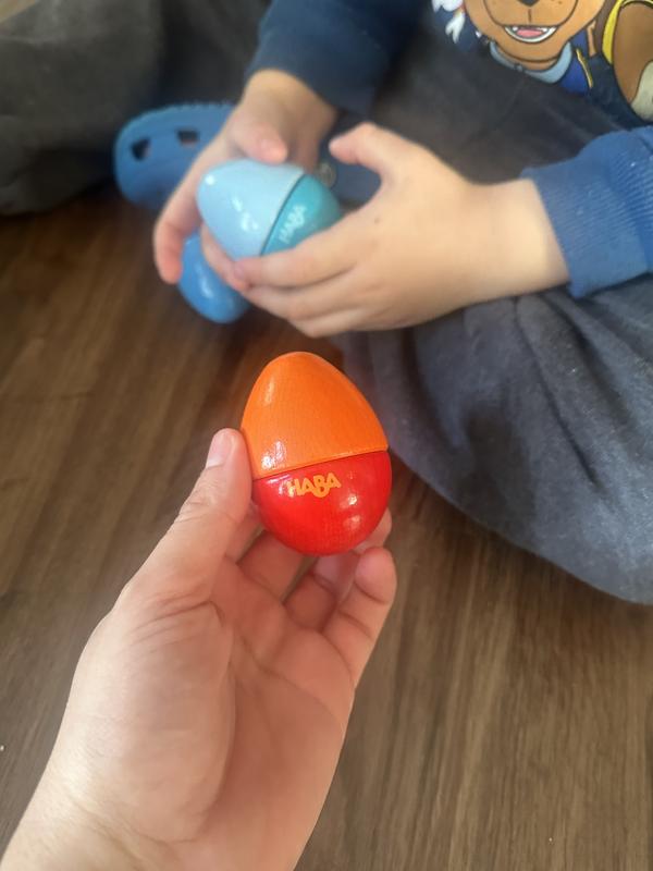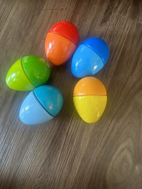 Lovely handmade & vibrantly colored eggs. My son enjoys the various sounds & ability to hold them easily. Great craftsmanship all around!