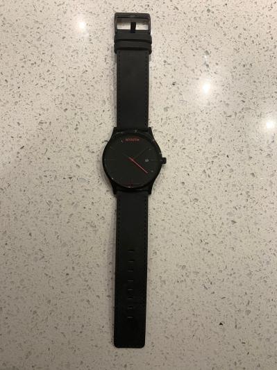 This watch is cool it’s nice black watch only thing I wish the band was metal but still very sleek and nice and the red design was great to over all very nice watch I would buy.