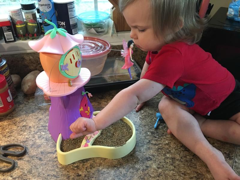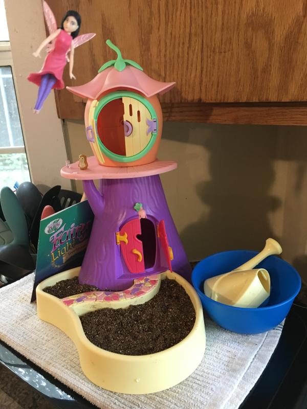 The fairy garden is beautiful to look at and has a lot interesting details to it. I sat down with my 4 year old daughter and 6 year old son, and both wanted to play with the dirt, water, and seeds not actually plant anything. I think for some kids this concept may not be so great especially when it comes to playing with dirt. I had to empty it out and let them just play with the toy instead. The toy itself is flimsy and just not well made. It is easy to take a apart especially since I found pieces of it throughout my house later on. The light in the tower on the little house worked for a second and then never turned on again. I put in several different triple A batteries and nothing could get it to work for more than a second. My kids like playing with it, but honestly, I would have made this for older children and also with harder plastic.