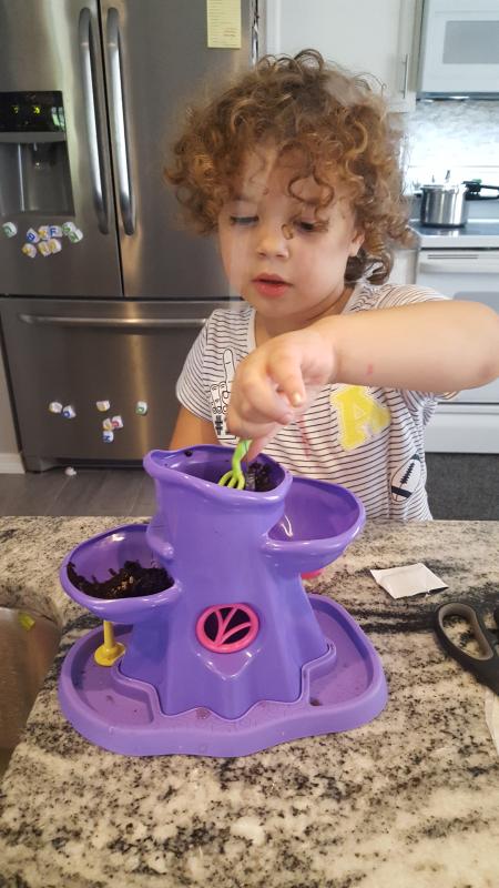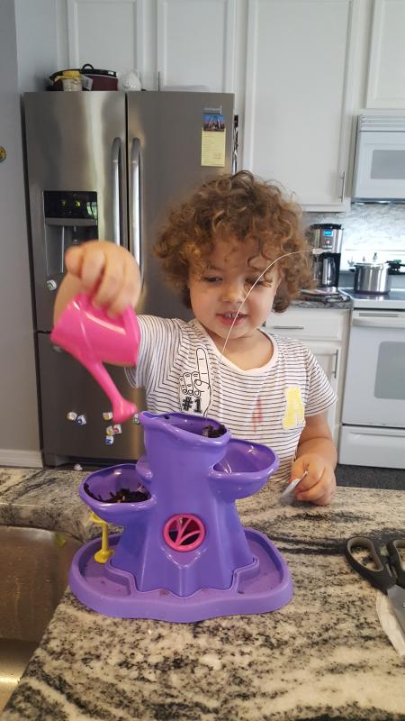 I bought this forever ago for my 3 yr old daughter and we just started it a few days ago. It was really easy to get it started and the plants started growing almost immediately. She loves seeing the new growth every day (sometimes you can see a difference by the middle of the day. I wish it had more soil, I feel like it doesn't fill up all the areas very well.and I wish it was a little easier to spread out the seeds, but I also don't have much of a green thumb. But it's still super cute and will be getting her more.