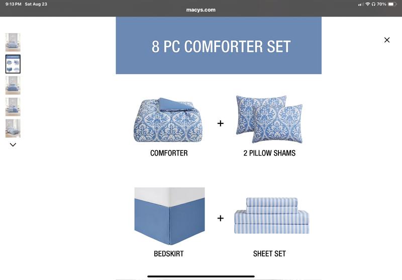 What a deal! I love the 8 piece Mytex Cassia Floral comforter set I recently purchased. The pattern and color is soothing and I love how soft and comfortable the sheets and comforter are. I like that the comforter isn't super fluffy or bulky but just right. It keeps us warm on cool evenings but isn't overly warm when just hanging out in the bedroom during the day. I would definitely recommend this product.