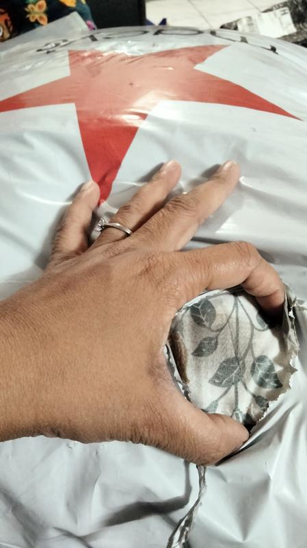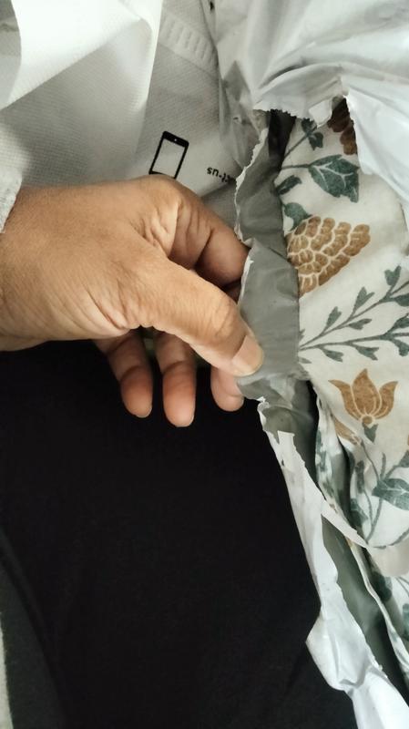 Package was torned and even where the package was sealed the material of the comforter was also sticked to it and it is sticked so badly that it will more tear the product. Mishandling by shipping and poor quality work of packing.