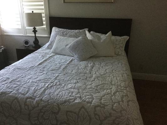 I ordered the full/queen size version of the Kira coverlet set in white. We have a queen size bed and the coverlet fit very well. It comes with 2 standard size shams. Nice quality in a grey stitched/quilted floral pattern which easily adapts to many types of décor. I look forward to using it in the warmer weather since it is a light weight cotton plus machine washable!