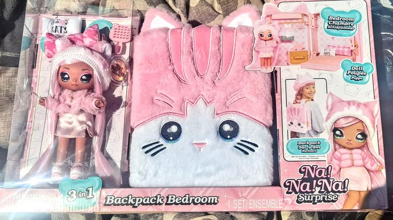 The little was beyond excited when the Na! Na! Na! Surprise 3-in-1 Backpack Bedroom Series 3 Playset- Pink Kitty came in!! I have yet to be able to pry this little lady out of her new backpack that has everything that she needs for play time. Amazing quality the colors are vibrant perfect for any little girl that loves this brand like mine does